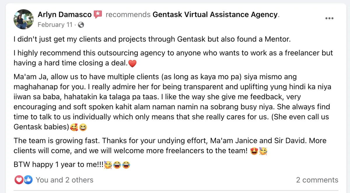 We are a Virtual Assistant Agency since 2020 and we promote Filipino Freelancers to our clients in the US, UK, Australia, NZ and etc.