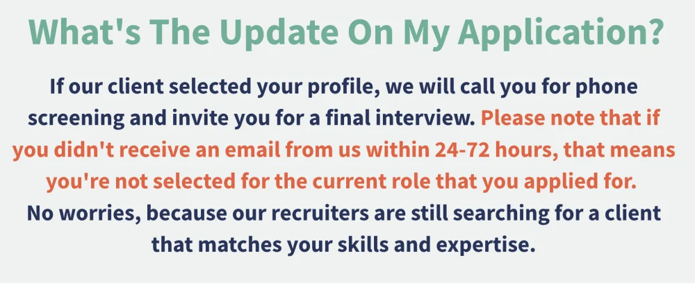 In order for us to properly consider you for the role, please make sure to complete this form and provide as many detailed information as possible for us to determine your skills and make the selection process easier.